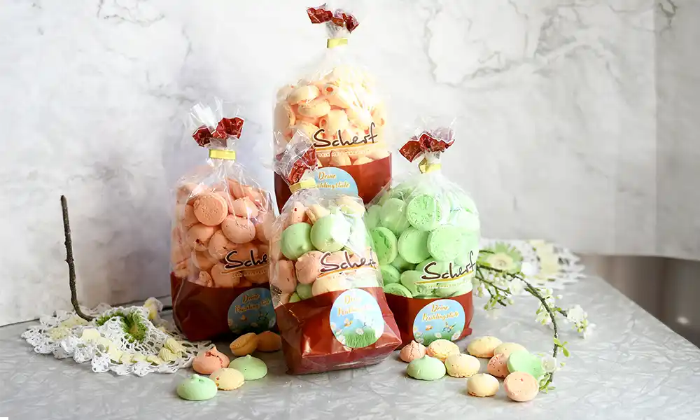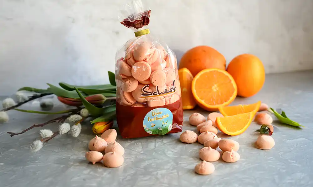 Unsere zarten, luftig-leichten Baiserplätzchen verwöhnen Deinen Gaumen in den frühlingshaften Geschmacksrichtungen Apfel, Orange und Ananas. Die frischen Farben sind ein Blickfang für Deinen Kaffeetisch.