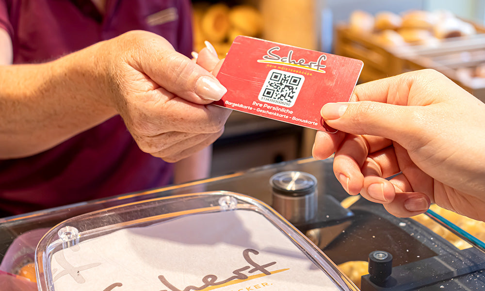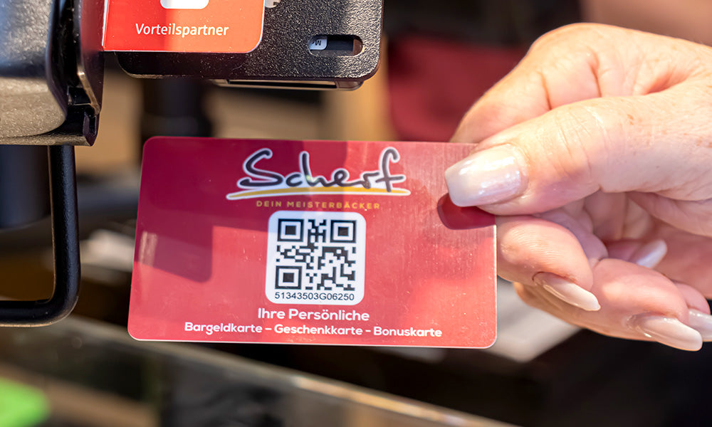 und bei 50 € mit 10% Bonus-Aufladung vom Meisterbäcker Scherf oben drauf.